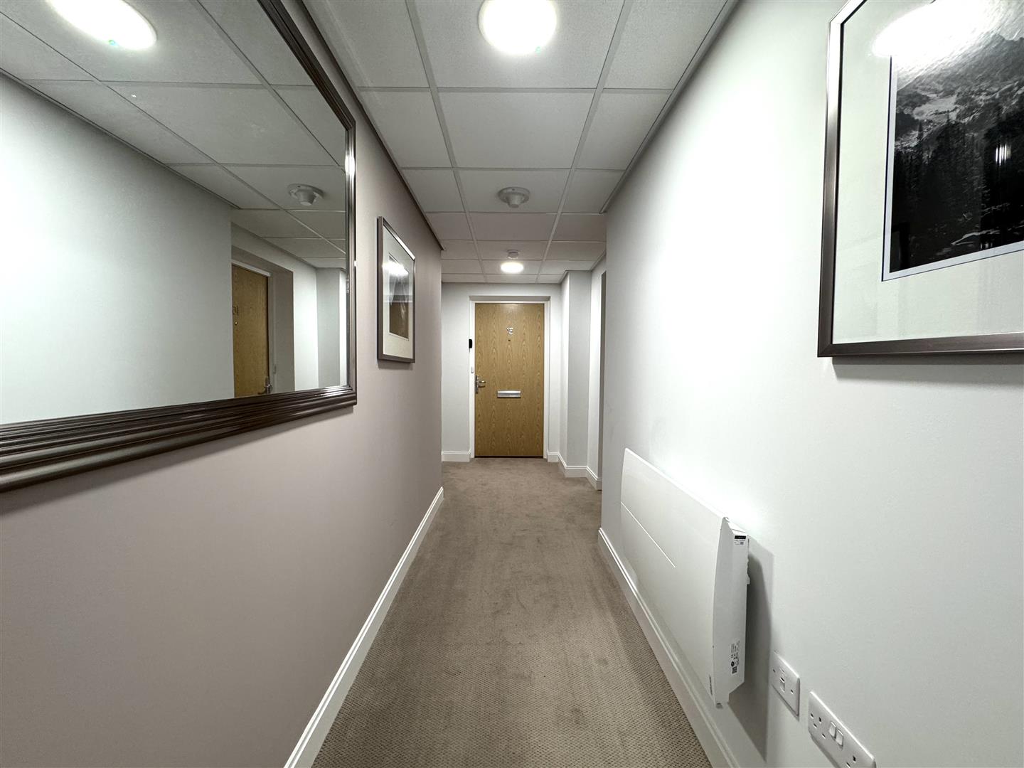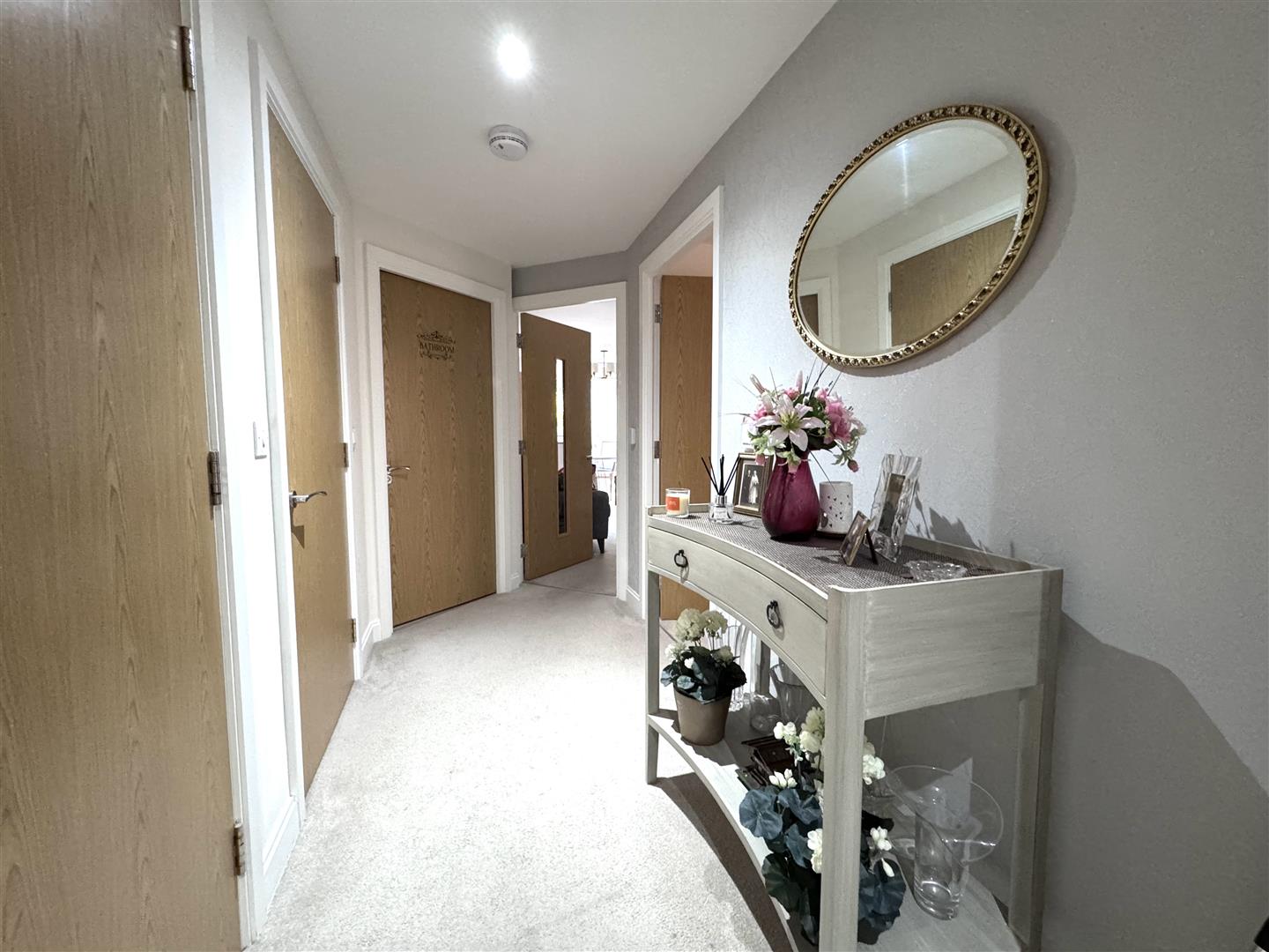 The apartment itself is entered via a welcoming hallway, designed with practicality and accessibility in mind. The hallway provides access to all accommodation and offers ample space for furniture, with a clean, modern finish that immediately sets the tone for the rest of the home.