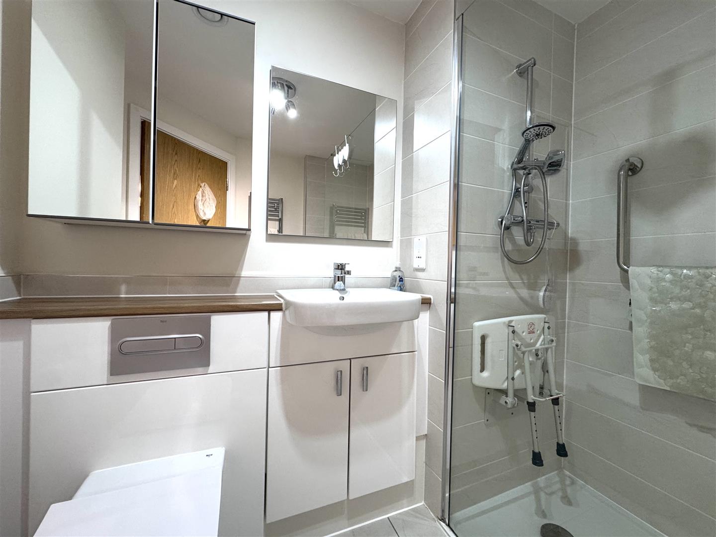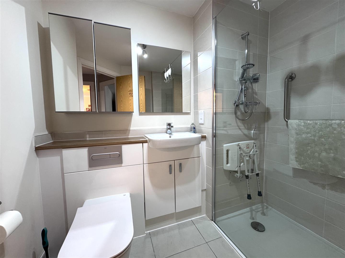 The bathroom is tastefully finished and designed with accessibility and ease of use in mind. It features modern sanitary ware and well-considered layout, offering both comfort and practicality for everyday living.