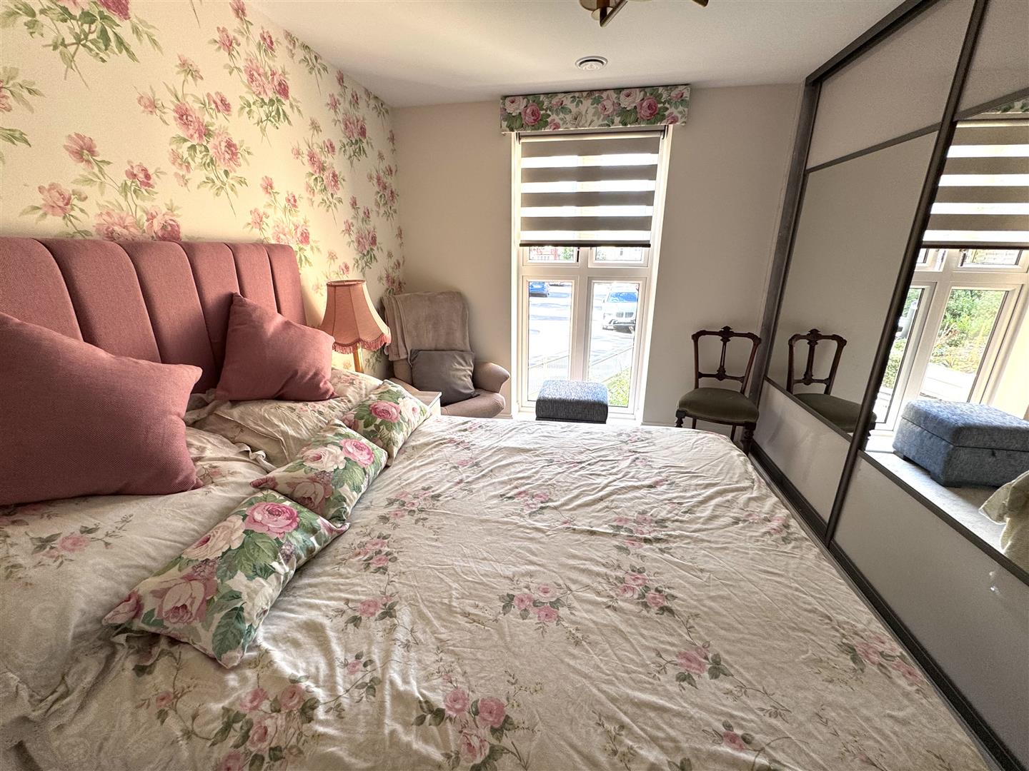 The generously sized principal bedroom offers a calm and relaxing retreat. It benefits from fitted wardrobes along with a walk-in wardrobe, providing excellent storage without compromising on floor space. The room comfortably accommodates bedroom furniture and enjoys a pleasant outlook, with electric blinds also fitted for added convenience and comfort.