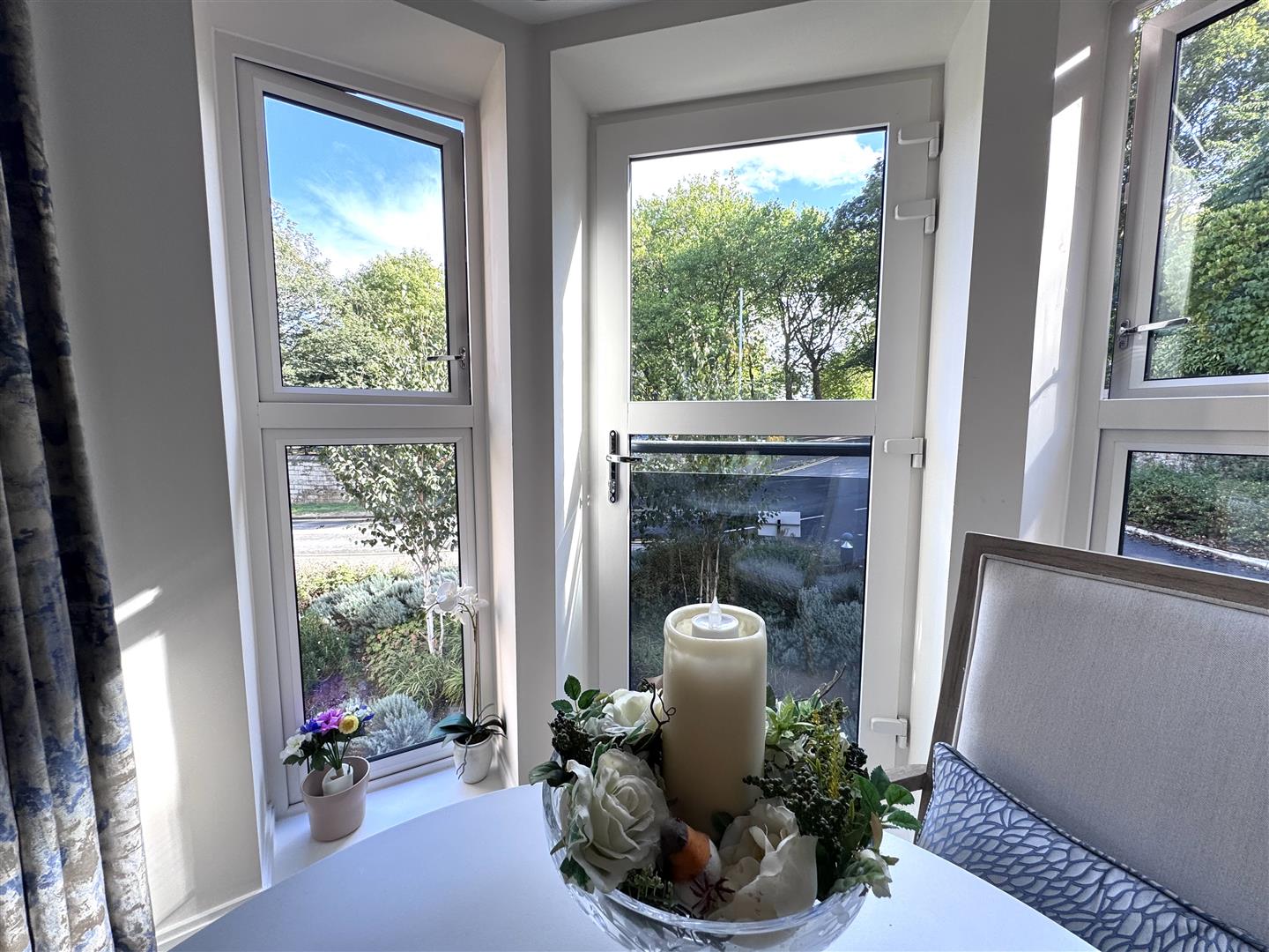 The living room is a bright and spacious area, ideal for both relaxing and entertaining. Large windows allow plenty of natural light to flood the room and are fitted with electric blinds, offering ease and comfort at the touch of a button. There is ample space for both lounge and dining furniture, making this a versatile and comfortable everyday living area.